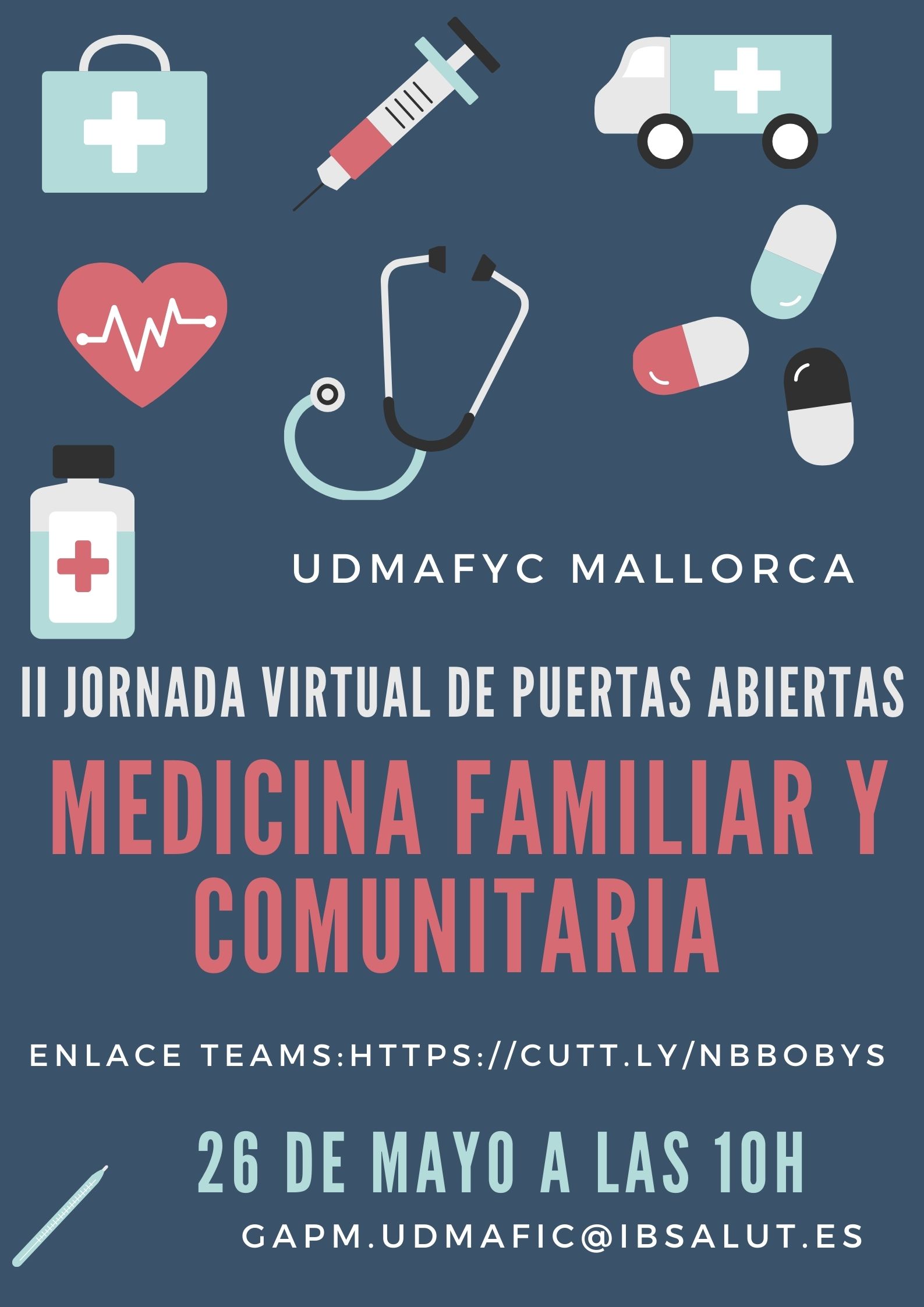 El próximo 26 de mayo a las 10h, tendrá lugar la II Jornada Virtual de Puertas Abiertas para Medicina Familiar y Comunitaria de la Unidad Docente Multiprofesional de Atención Familiar y Comunitaria de Mallorca.