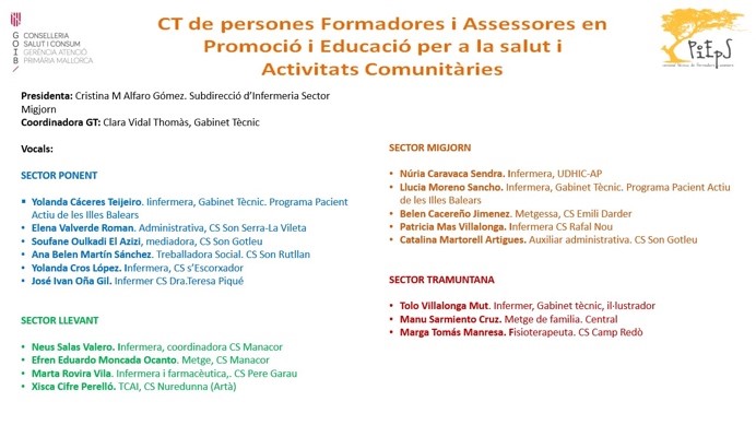 El día 16 de mayo de 2008 se constituyó en la Gerencia de Atención Primaria de Mallorca la Comisión Técnica de personas formadoras y asesoras en promoción, educación para la salud y actividades comunitarias (CT PiEpS y AC), hoy celebramos su 15º cumpleaños.