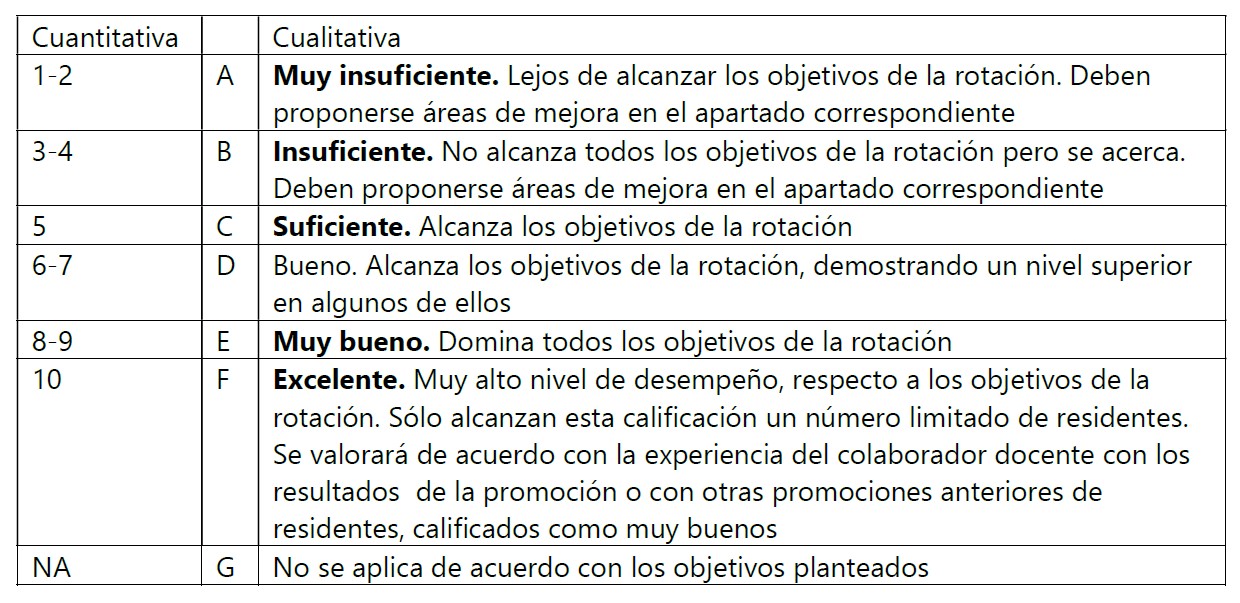 Formulario de evaluación de la rotación para TUTORES y COLABORADORES