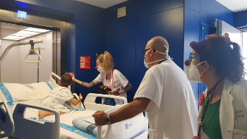 \ Les pallasses de Sonrisa Médica passen a acompanyar els pacients de l'Hospital Can Misses dos dies: el dilluns i el dimarts