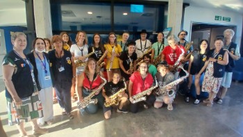 / El grupo de saxos del curso de verano del Patronato de música del Ayuntamiento de Eivissa ofrece un concierto a los pacientes de Traumatología y Especialidades médicas