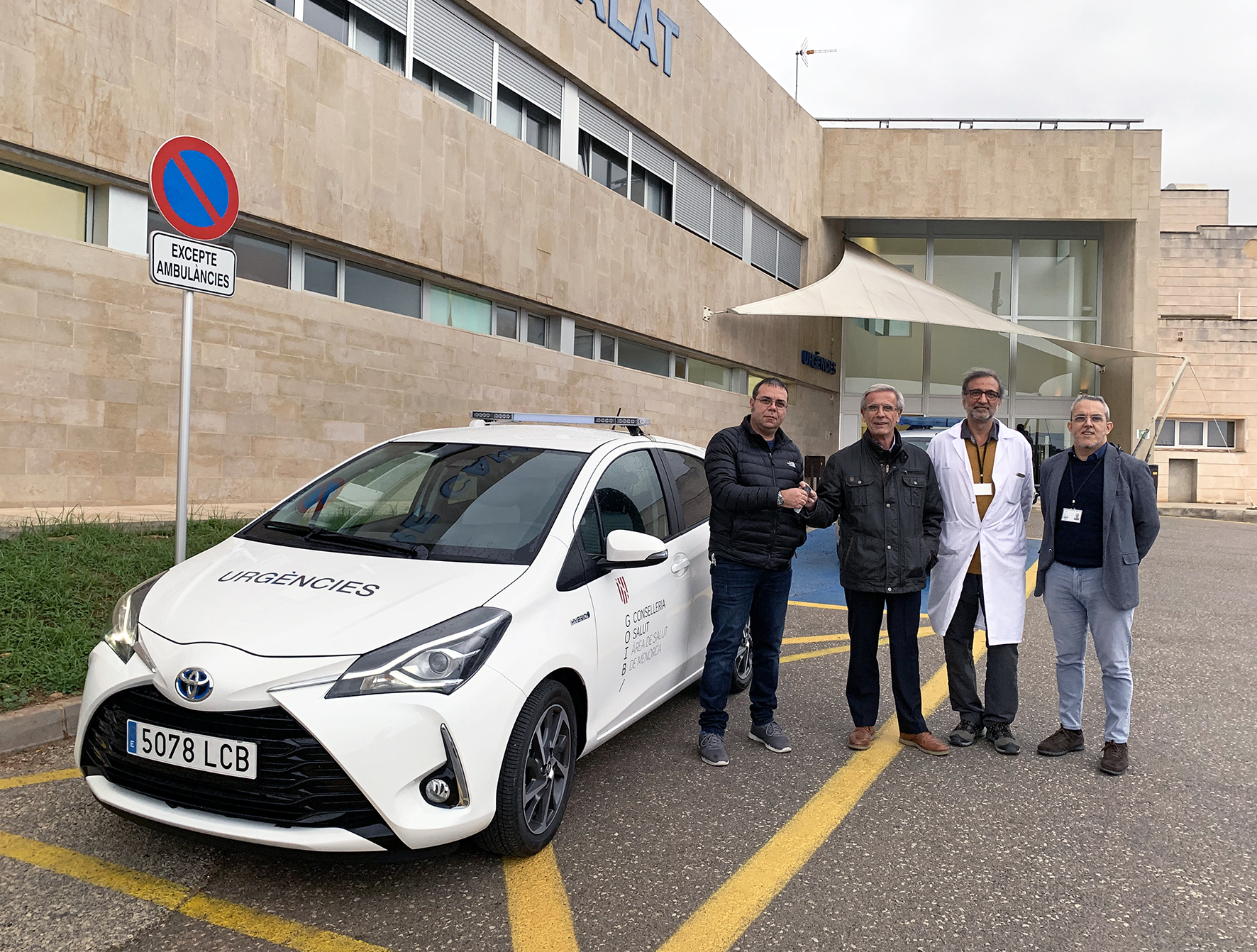 El gerent de l’Àrea de Salut de Menorca, Romà Julià, va lliurar aquest dilluns al doctor Juan Antonio Monjo, responsable del Servei d’Urgències (SUAP) de Canal Salat, les claus del nou vehicle per als trajectes d’atenció domiciliària i assistències urgents. A l’acte també varen assistir el director d’Atenció Primària, Txema Coll, i el doctor Francisco Sánchez Cabrera, coordinador del centre de salut.
