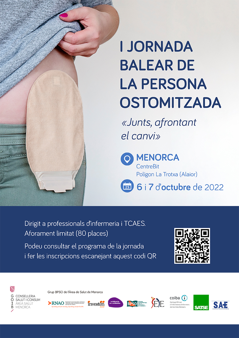 Els propers dies 6 i 7 d'octubre, Menorca acollirà la I Jornada Balear de la Persona Ostomitzada, organitzada per l'equip de les guies BPSO de «Cura i maneig de l'ostomia» i «Suport a adults que esperen o viuen amb una ostomia» de l'Àrea de Salut de Menorca. Les sessions tindran lloc en el CentreBit, d'Alaior, i reuniran una setantena persones, entre infermers, tècnics en cures auxiliars d'infermeria i pacients.