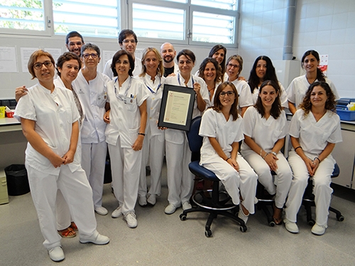 El servei de transfusió de sang de l’Hospital General Mateu Orfila té un equip format per tres metges, dues infermeres i tres tècnics de laboratori, que treballen per torns, de matí, i amb un total de deu tècnics que cobreixen els torns de capvespre, nit i dies festius, amb l’objectiu d’atendre totes les necessitats de transfusió de sang. La Dra. Elvira Oliva, responsable del servei, assegura que tenir un certificat de qualitat és molt gratificant, pel gran esforç que requereix al personal, però sobretot perquè aporta credibilitat i confiança als pacients des del moment en què tots els processos responen a uns criteris de qualitat i seguretat reconeguts i avalats per les societats científiques.