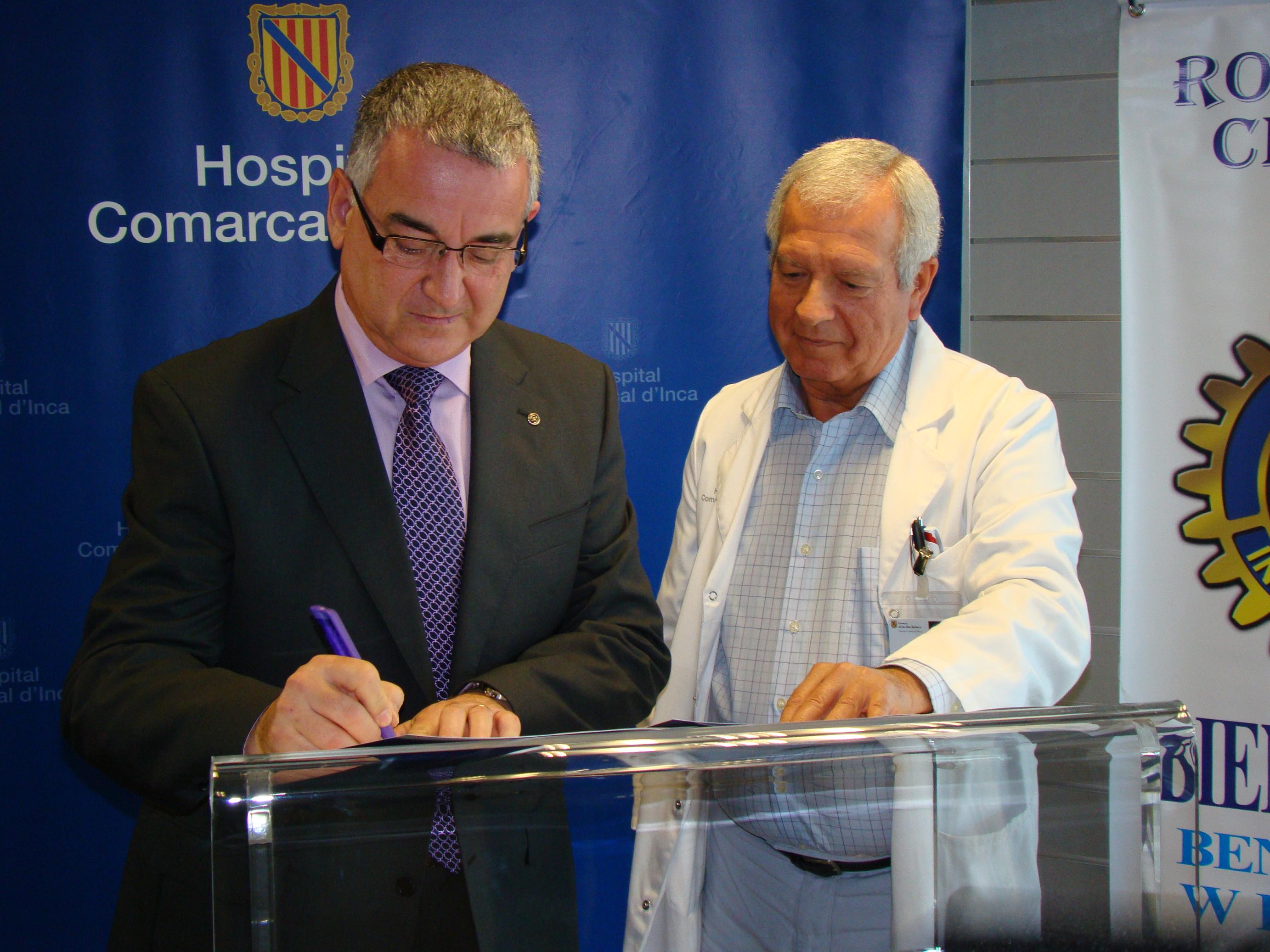 El gerente del Hospital Comarcal de Inca (HCIN), Federico Álvarez, y el presidente del Rotary Club de Inca, han firmado esta mañana la donación por parte del Rotary Club de Inca de una biblioteca integrada por su mobiliario y dotada con 1550 volúmenes, destinada para el uso de pacientes y familiares del HCIN.